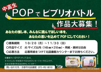 図書館でいう【POP(ポップ)】とは、オススメしたい本を紹介するためのメッセージカードのことです。あなたの推し本、みんなに読んでほしい本を、あなたの思いを込めてPOPにしてください!