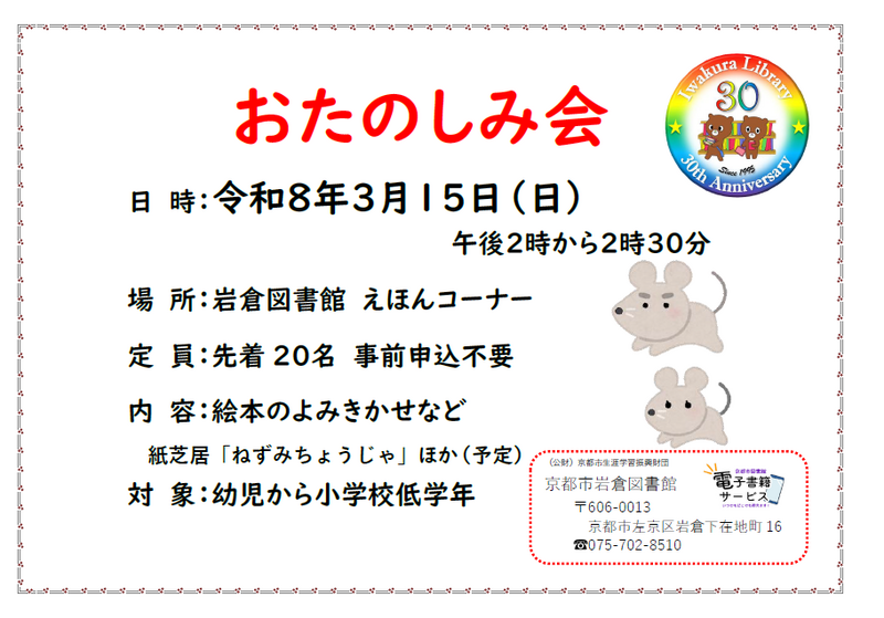 3月「おたのしみ会」のお知らせ
