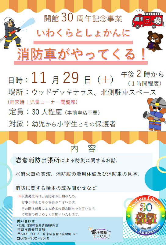 開館30周年記念事業「いわくらとしょかんに消防車がやってくる!」のお知らせ