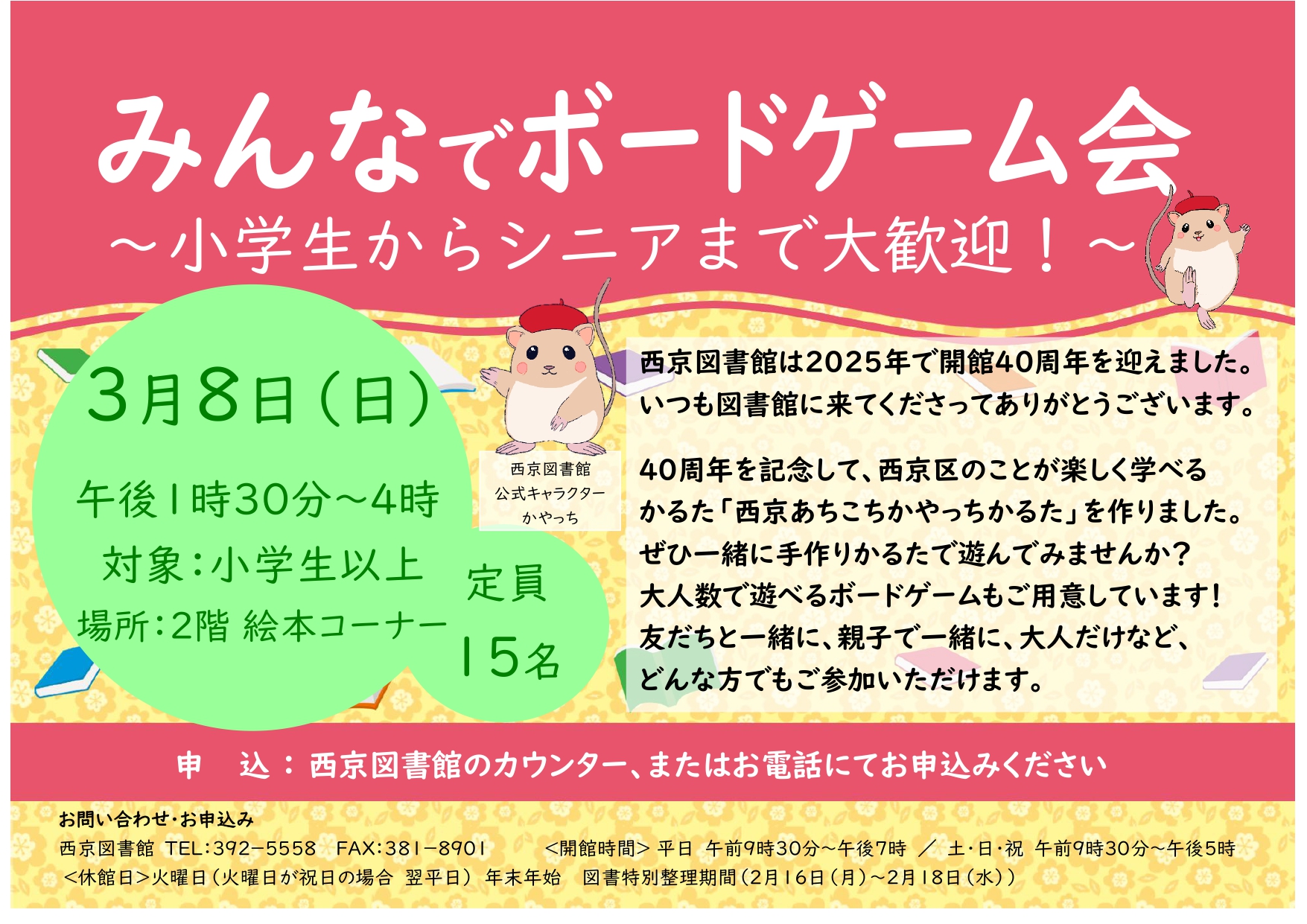 申 込:西京図書館カウンター、またはお電話にてお申込みください