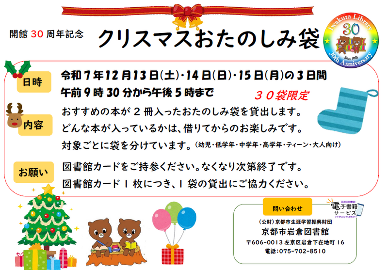 開館30周年記念事業「クリスマスおたのしみ袋」のお知らせ