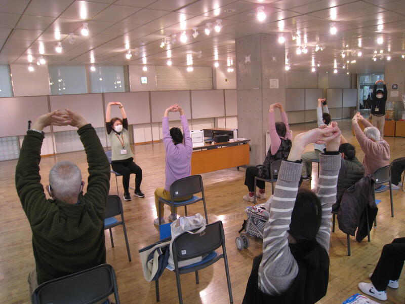 参加者は11名で、座ってできる体操や朗読などを行いました。