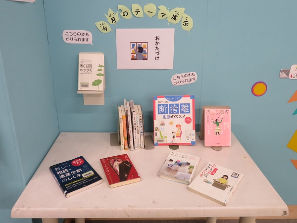 今月の展示は「おかたづけ」です。整頓に役立つ一冊が見つかるかも。