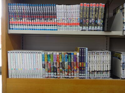 また、館内でのみ閲覧可能な資料もご用意しております(※貸出不可資料)。昨年新たに当館に加わった『圕(としょかん)の大魔術師』や、京都市図書館では当館が唯一の所蔵となる『鬼滅の刃』など、岩倉図書館に来て、ごゆっくりお読みいただける資料となっています。